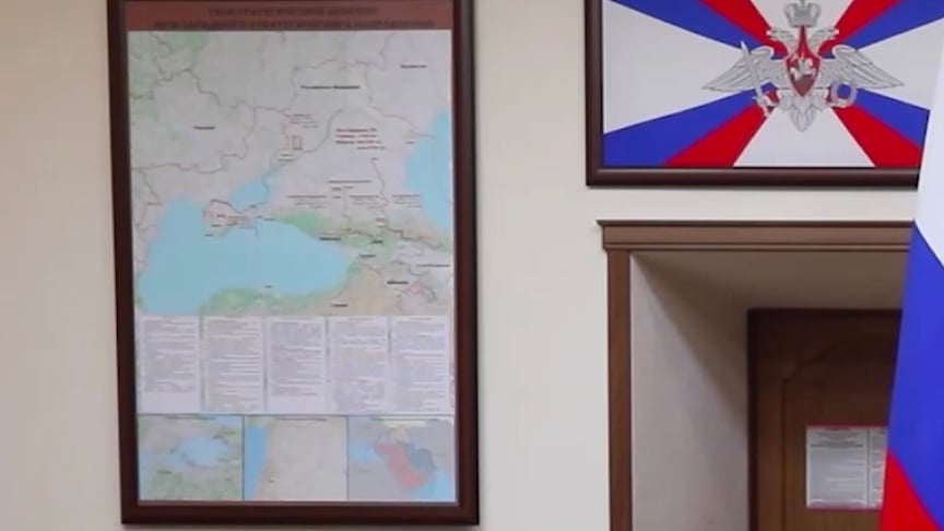В російському Генштабі повісили карту, де Миколаївська та Одеська області виділені як частини РФ